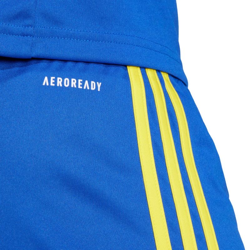 Spodenki damskie adidas Squadra 25 niebiesko-żółte JN5408 Damskie spodenki adidas Squadra to propozycja dla wszystkich zawodniczek, które bez zakłóceń chcą prowadzić drużynę ku zwycięstwu. Elastyczna talia regulowana sznurkiem. Technologia Aeroready zadba o suchość do końca meczu lub treningu. Szybkoschnące włókna pochodzące z recyklingu. Materiał: dzianina o gęstym splocie, 100% poliester pochodzący z recyklingu