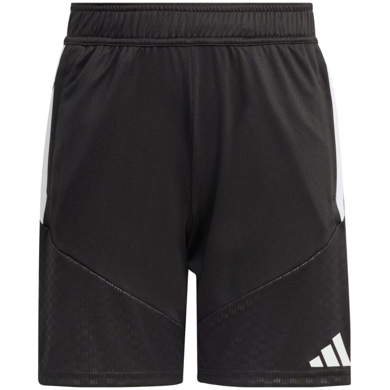 Spodenki dla dzieci adidas Tiro 26 Competition Training czarne KA7656 Spodenki dla dzieci adidas sprawdzą się podczas treningów. Model pochodzi z linii Tiro. Elastyczna talia regulowana wewnętrznym sznurkiem. Technologia Climacool pochłania i odprowadza pot. Paski po bokach. Subtelne logo. Materiał: 100% poliester pochodzący z recyklingu