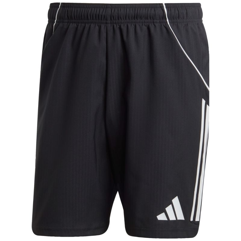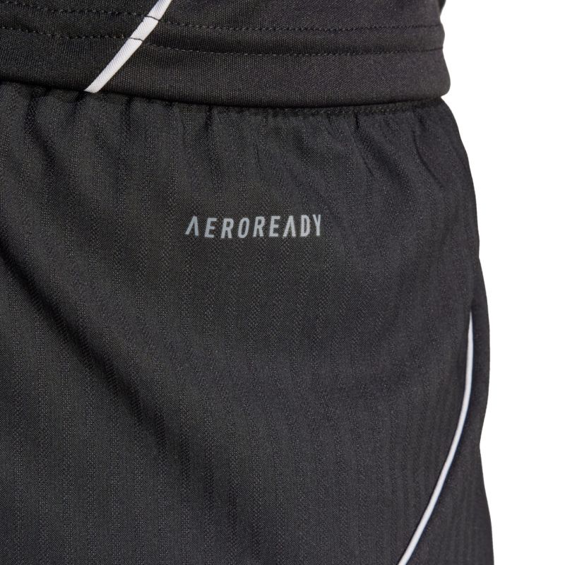 Spodenki męskie adidas Tiro 25 Competition Match czarne JG1062 Męskie spodenki adidas sprawdzą się podczas rozgrywek meczowych. Model pochodzi z linii Tiro. Elastyczna talia regulowana wewnętrznym sznurkiem. Technologia Aeroready pomaga odprowadzać nadmiar wilgoci do zewnętrznych warstw. Materiał: 100% poliester pochodzący z recyklingu