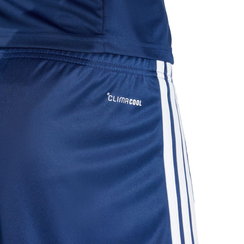 Spodenki męskie adidas Tiro 26 League granatowe KA8790 Męskie spodenki adidas sprawdzą się podczas rozgrywek. Model pochodzi z linii Tiro. Standardowy krój. Elastyczna talia regulowana wewnętrznym sznurkiem. Technologia Climacool. Paski po bokach. Niewielkie, wyszywane logo. Materiał: 100% poliester pochodzący z recyklingu