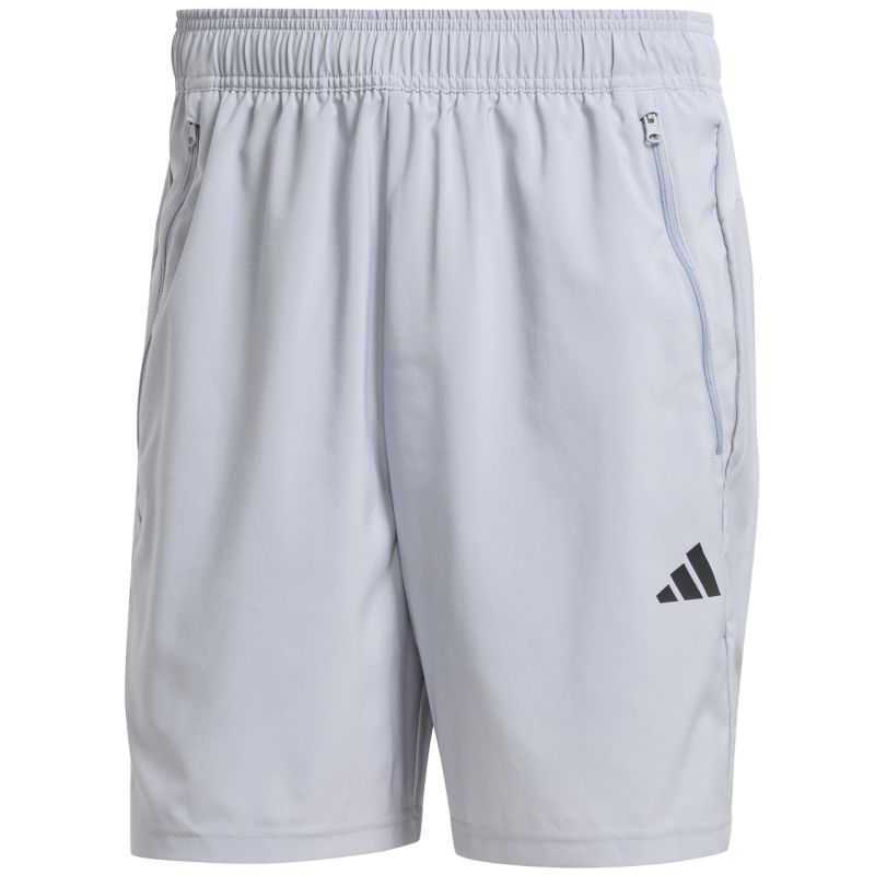 Spodenki męskie adidas Train Essentials Woven Training szare JX2716 Szorty męskie adidas sprawdzą się podczas treningów. Technologia Aeroready sprawnie odprowadza wilgoć na zewnątrz, pozostawiając przyjemne uczucie świeżości, co przekłada się na skupienie i koncentrację. Szybkoschnąca tkanina. Standardowy krój. Elastyczna talia z wewnętrznym sznurkiem do regulacji. Zapinane, boczne kieszenie. Niewielkie logo adidas. Materiał powstały w procesie recyklingu pomaga dbać o środowisko. Materiał: 100% poliester z recyklingu
