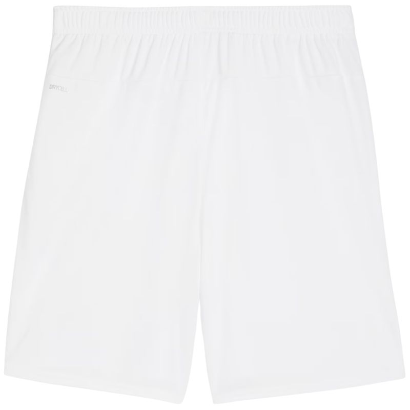 Spodenki męskie Puma Team Goal białe 705752 04 Męskie spodenki Puma sprawdzą się podczas treningów. Regularny krój. Model z kolekcji teamGOAL. Szybkoschnąca tkania z technologią DryCell odprowadza nadmiar wilgoci. Elastyczna talia. Siateczkowe wstawki po bokach. Niewielkie logo Puma. Materiał: 100% poliester