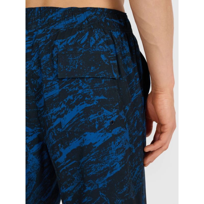 Te męskie boardshorty to idealny wybór na letnie aktywności, rekreacyjne pływanie i codzienny relaks nad wodą. Wykonane z lekkiego, szybkoschnącego materiału o gramaturze 130 gsm, zapewniają przewiewność, wygodę i swobodę ruchu przez cały dzień. Krój regular fit gwarantuje naturalne dopasowanie, a długość przed kolano sprawia, że spodenki świetnie sprawdzą się podczas aktywności w ruchu. Wewnętrzne majtki z siateczki zapewniają lepsze krycie i wsparcie, a elastyczny pas z trokami umożliwia indywidualne dopasowanie. Kieszenie boczne oraz tylna kieszeń na rzep pozwalają zabrać najpotrzebniejsze drobiazgi, a nadruk allover dodaje energii i letniego stylu.