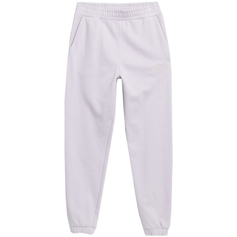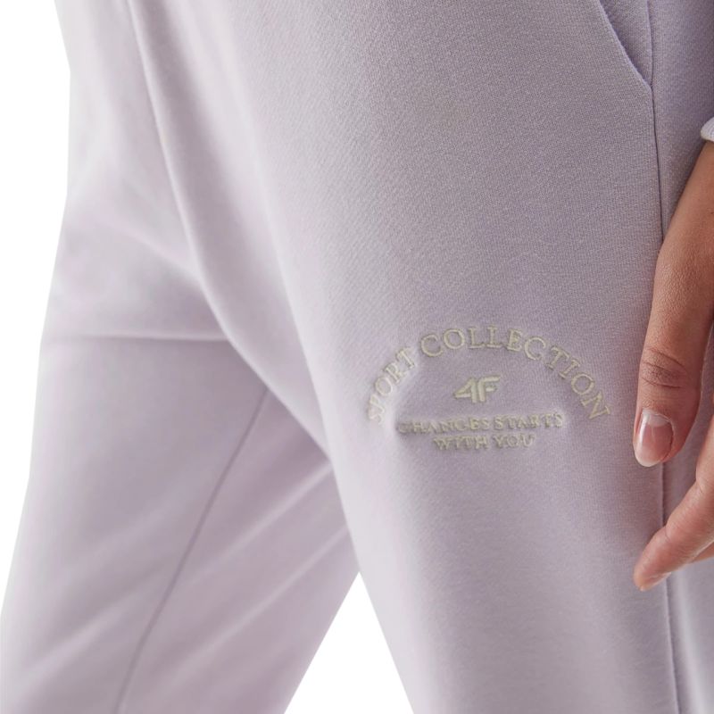 Spodnie dla kobiet 4F sprawdzą się podczas codziennego użytkowania. Nieocieplane. Elastyczna guma w pasie bez regulacji. 2 otwarte kieszenie po bokach. Szersze, proste nogawki zakończone gumkami. Na nogawce haftowany napis "Sport Collection 4F Change Starts with You". Przyjemna w dotyku dzianina z wysoką zawartością bawełny. Użycie włókien pochodzących z recyklingu (materiał główny zawiera 13% poliestru z recyklingu).