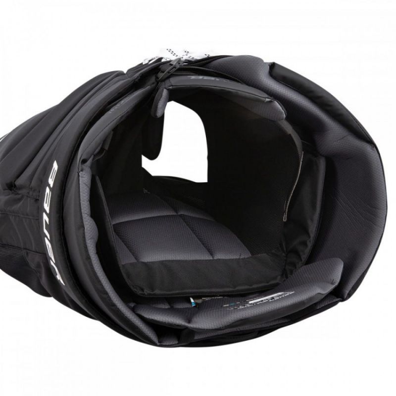 Spodnie bramkarskie Bauer Pro '20 Sr Spodnie PRO to jedyny profesjonalny model marki Bauer w tej kategorii, dzięki czemu oferuje to, co najlepsze z serii Supreme i Vapor. Spodnie zostały zaprojektowane w oparciu o opinie profesjonalnych bramkarzy. Wszystkie części ciała są chronione najlepszymi materiałami, które znajdziemy w branży hokejowej. Na udach znajduje się kompozyt Curv, pośladki są chronione pianką Poron i Schock Lite. Spodnie są zaciśnięte dwukrotnie, za pomocą wewnętrznego paska i zewnętrznej strony, znajdujemy klasyczne sznurówki hokejowe, które po prostu nie pozwalają. Dzięki specjalnym suwakom spodnie można przedłużyć nawet o jeden cal. Szerokość uda 10 cali jest maksymalną możliwą dozwoloną i zajmiesz maksymalną możliwą przestrzeń w bramce. Wnętrze spodni pokryte jest sprawdzoną podszewką ThermoMax klasy premium, która gwarantuje graczowi doskonały komfort i wygodę.