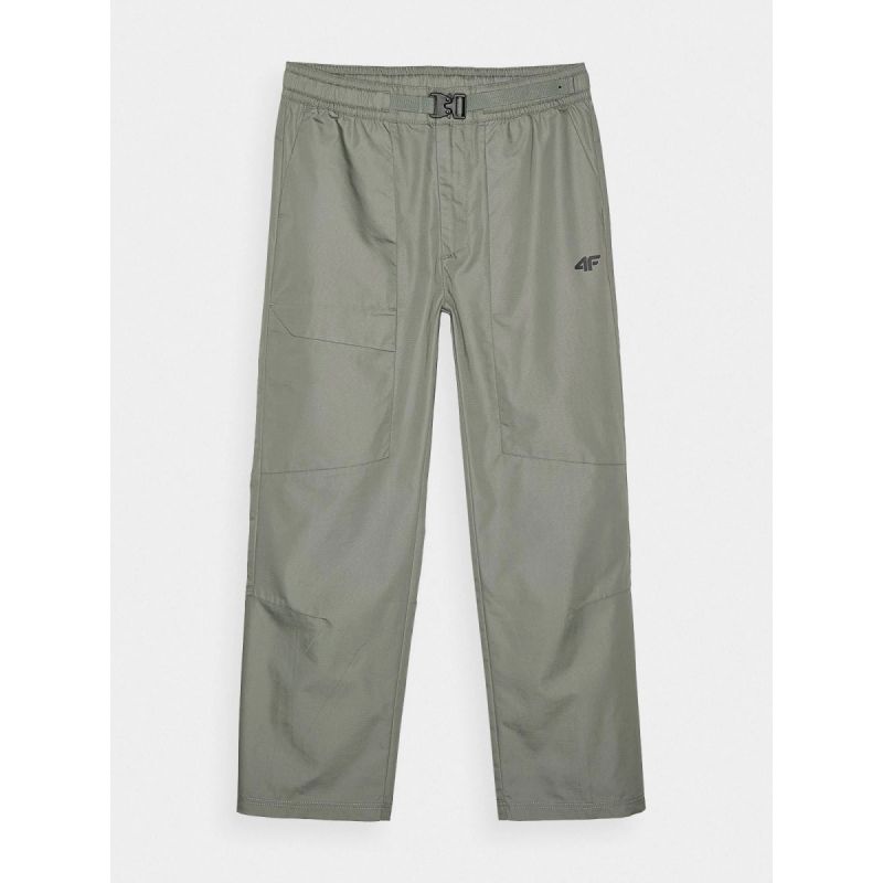 Męskie spodnie casual to uniwersalny wybór do codziennych stylizacji lifestylowych i sportowych, stworzony z myślą o wygodzie i funkcjonalności. Krój regular wygodnie dopasowuje się do sylwetki, a proste nogawki bez ściągacza i regulacji zapewniają klasyczny, ponadczasowy wygląd. Model został wykonany z naturalnej bawełny (72%), która jest miękka, trwała i przyjemna w dotyku, natomiast dodatek poliestru (28%) zwiększa odporność materiału na zużycie oraz pomaga zachować fason przez wiele sezonów. Brak podszycia sprawia, że spodnie są lżejsze i idealne na cieplejsze dni. Praktyczne rozwiązania, takie jak dwie otwarte kieszenie boczne oraz dodatkowa zapinana kieszeń na nogawce, ułatwiają przechowywanie drobiazgów. Elastyczny pas z dodatkowym paskiem zapinanym na klamrę z zatrzaskiem zapewnia stabilne i wygodne dopasowanie podczas codziennego użytkowania.