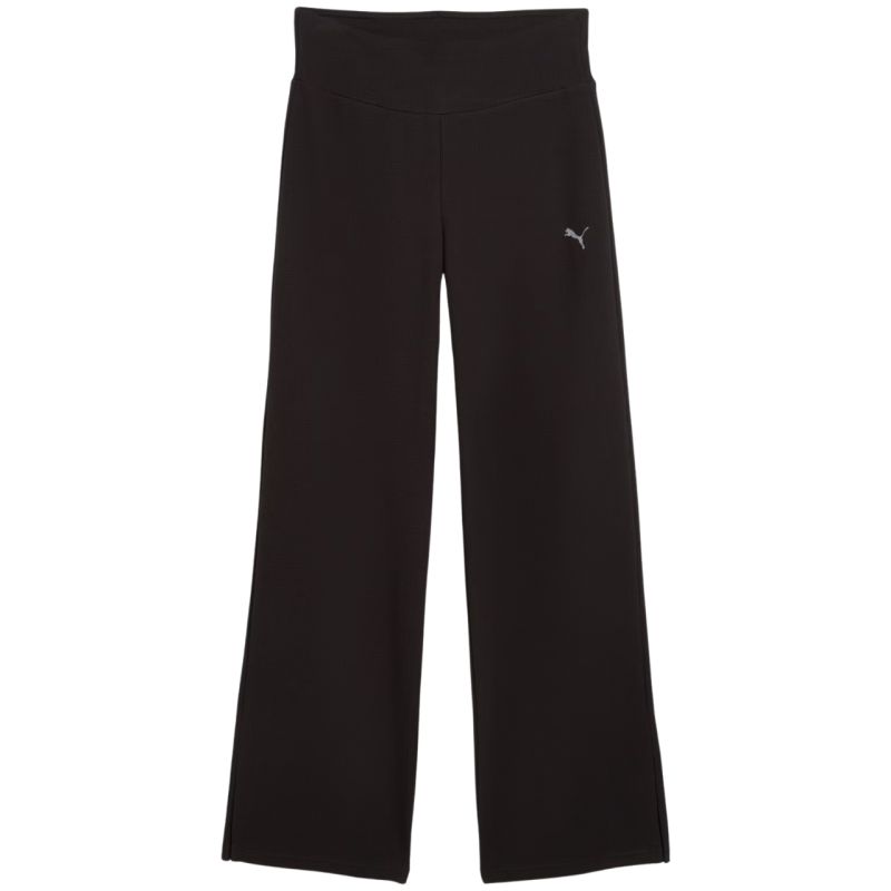 Spodnie damskie Puma ESS Elevated czarne 691815 01 Spodnie damskie Puma sprawdzą się na co dzień. Luźny krój z szerokimi nogawkami i wysokim stanem. Żakardowa faktura materiału. Miękka, przewiewna bawełna. Niewielkie rozcięcia po bokach nogawek. Co najmniej 30% tkaniny pochodzi z recyklingu. Materiał główny: 61% bawełna, 34% poliester, 5% elastan