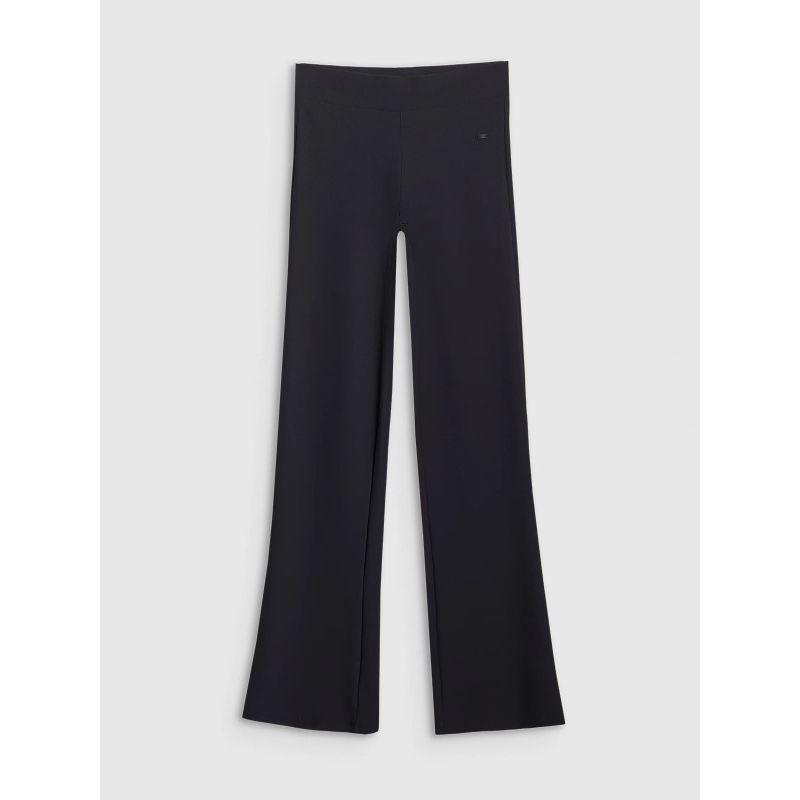 - Pionowe Prążki: Dzianina o charakterystycznych prążkach nadaje spodniom unikalny wygląd i sprawia, że materiał jestrozciągliwyorazmiękki w dotyku.