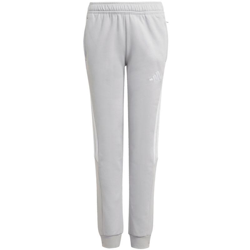 Spodnie dla dzieci adidas Tiro 26 League Sweat szare JY9672 Spodnie dla dzieci adidas będące częścią linii Tiro sprawdzą się podczas odpoczynku pomiędzy sesjami treningowymi. Połączenie oddychającej bawełny z trwałymi, poliestrowymi włóknami. Regularny krój ze ściągaczowymi wstawkami w dolnej części nogawek. Elastyczna talia z wewnętrznym sznurkiem do regulacji. Zapinane kieszenie boczne. Materiał: 70% bawełna, 30% poliester