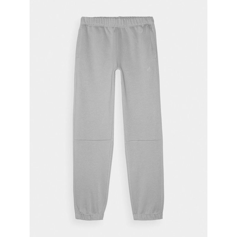 Dresy młodzieżowe wykonane z dzianiny o średniej gramaturze 280 gsm, która sprawia, że są one miękkie oraz bardziej przewiewne.Dresy 4F dla chłopaka są wykonane w 80% z bawełny, dzięki czemu są miękkie, trwałe i przyjemne w dotyku. Dodatek poliestru (20%) sprawia, że materiał utrzymuje fason i jest odporny na zużycie nawet przez wiele sezonów. Czesane wnętrze gwarantuje dodatkowe ciepło, co sprawia, że spodnie będą idealnym wyborem na chłodniejsze dni. Po bokach znajdują się 2 kieszenie otwarte. Dodatkowo z tyłu znajduje się niezapinana kieszeń. Elastyczny pas z wewnętrzną regulacją na troki.