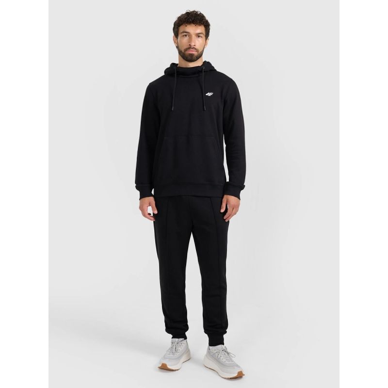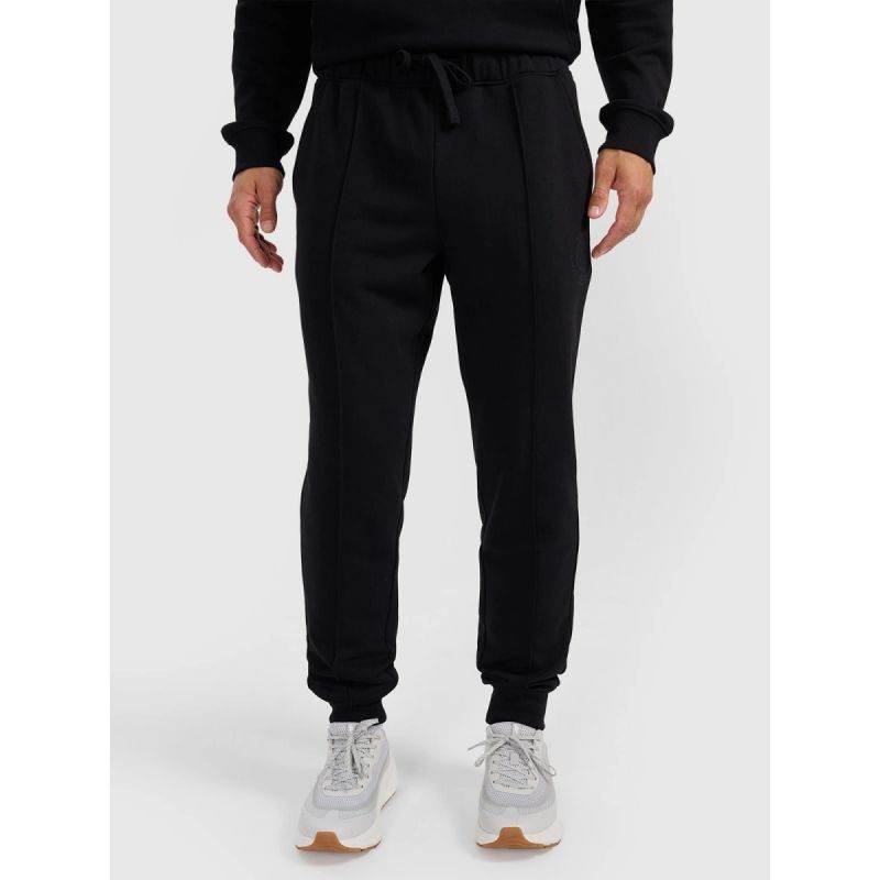Te spodnie dresowe to idealny wybór dla mężczyzn, którzy cenią wygodę i praktyczne rozwiązania na każdy dzień. Krój regular zapewnia swobodę ruchów, a średni stan dobrze układa się na biodrach, oferując komfort podczas codziennych aktywności. Kieszenie boczne na zamek gwarantują bezpieczne przechowywanie kluczy, telefonu czy innych drobiazgów, a regulowany pas ze sznurkiem umożliwia idealne dopasowanie. Elastyczne ściągacze przy nogawkach nadają spodniom sportowy charakter i poprawiają stabilność podczas noszenia.