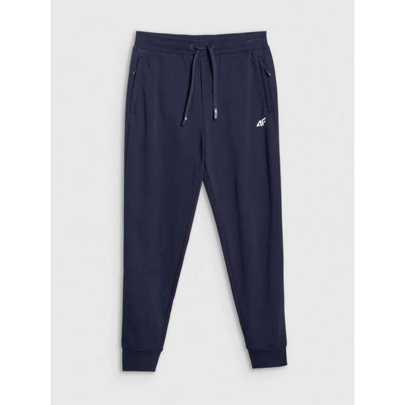 Model wyposażono w regulowany pas ze sznurkiem, który pozwala precyzyjnie dopasować obwód do sylwetki. Elastyczne ściągacze przy nogawkach pomagają utrzymać spodnie na miejscu i podkreślają sportowy charakter.