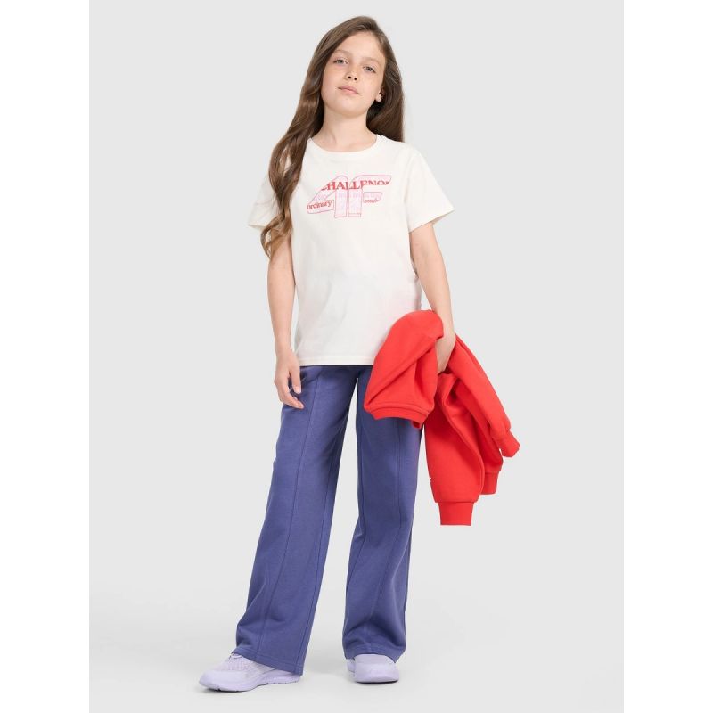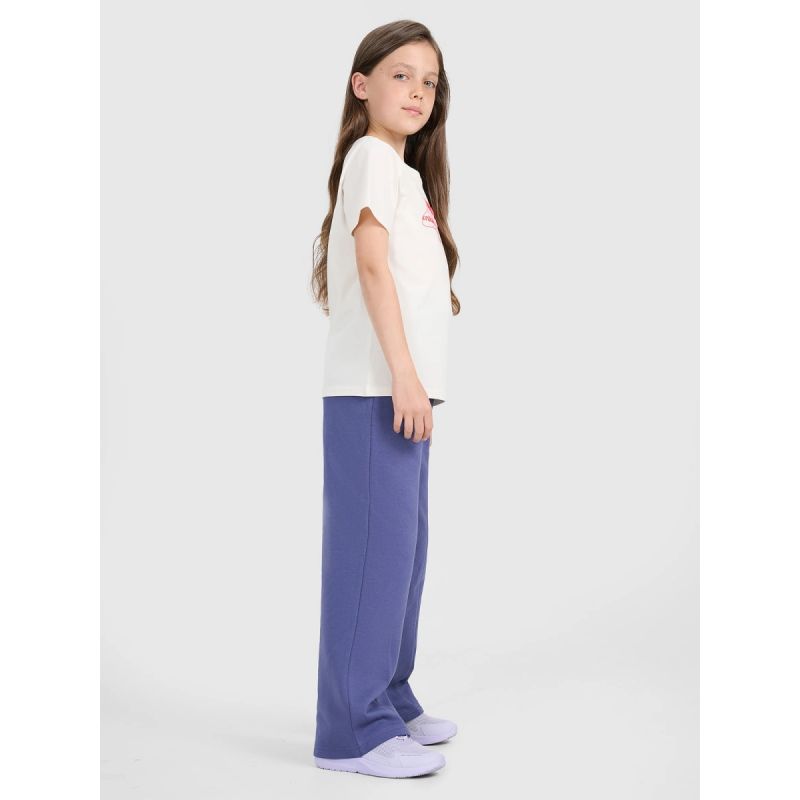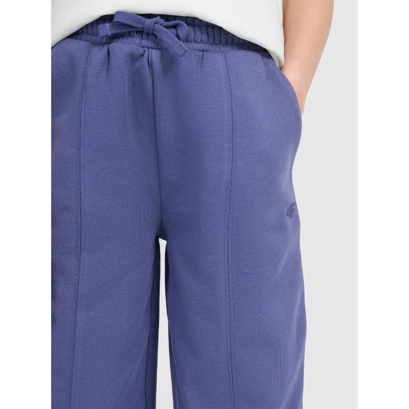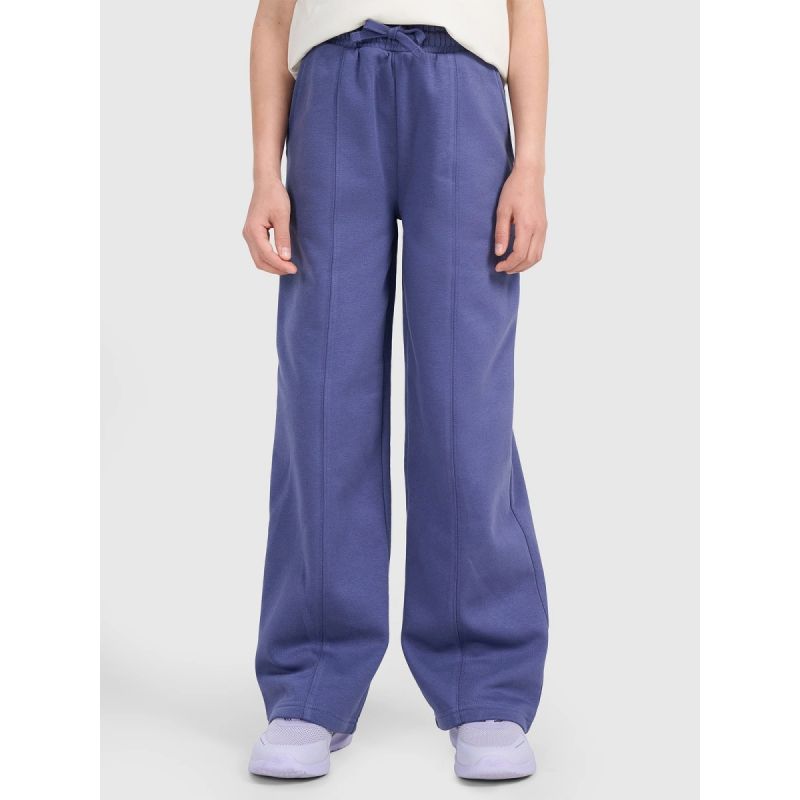 Te spodnie dresowe młodzieżowe 4F to idealna propozycja dla dziewczyn, które cenią wygodę i nowoczesny styl. Krój oversize zapewnia pełną swobodę ruchów, a proste, szerokie nogawki z przeszyciem dodają modnego charakteru i optycznie wydłużają sylwetkę. Dzianina single jersey z jednostronnie czesanym wnętrzem gwarantuje miękkość i dodatkowe ciepło, co sprawia, że spodnie świetnie sprawdzą się w chłodniejsze dni. Dzięki średniej gramaturze 280 gsm są przyjemnie mięsiste, ale nadal przewiewne. Wykonanie z 80% bawełny i 20% poliestru zapewnia trwałość, komfort noszenia i odporność na zużycie. Elastyczny pas ze sznurkiem umożliwia indywidualne dopasowanie, a dwie otwarte kieszenie dodają funkcjonalności. To idealne spodnie na co dzień — do szkoły, na spacer czy luźne aktywności.