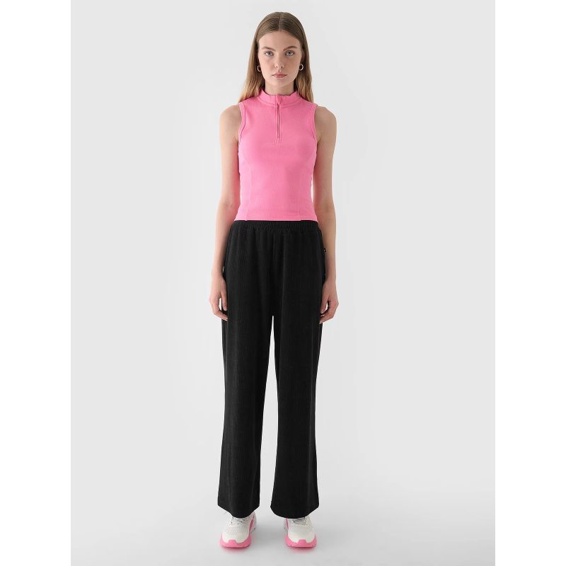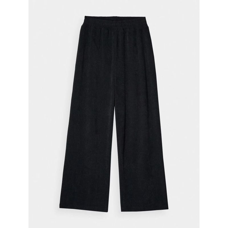 Damskie spodnie dresowe z weluru są wykonane z weluru o delikatnym połysku. Welur wyróżnia się miękką, delikatną w dotyku powierzchnią. Ponadto zapewnia wysoką elastyczność i sprężystość oraz bardzo dobrze układa się na ciele. Dodatek poliestru (5%) sprawia, że materiał utrzymuje fason i jest odporny na zużycie nawet przez wiele sezonów. Spodnie nie posiadają podszycia, dzięki czemu są lżejsze i odpowiednie na cieplejsze dni. Elastyczny pas bez regulacji.