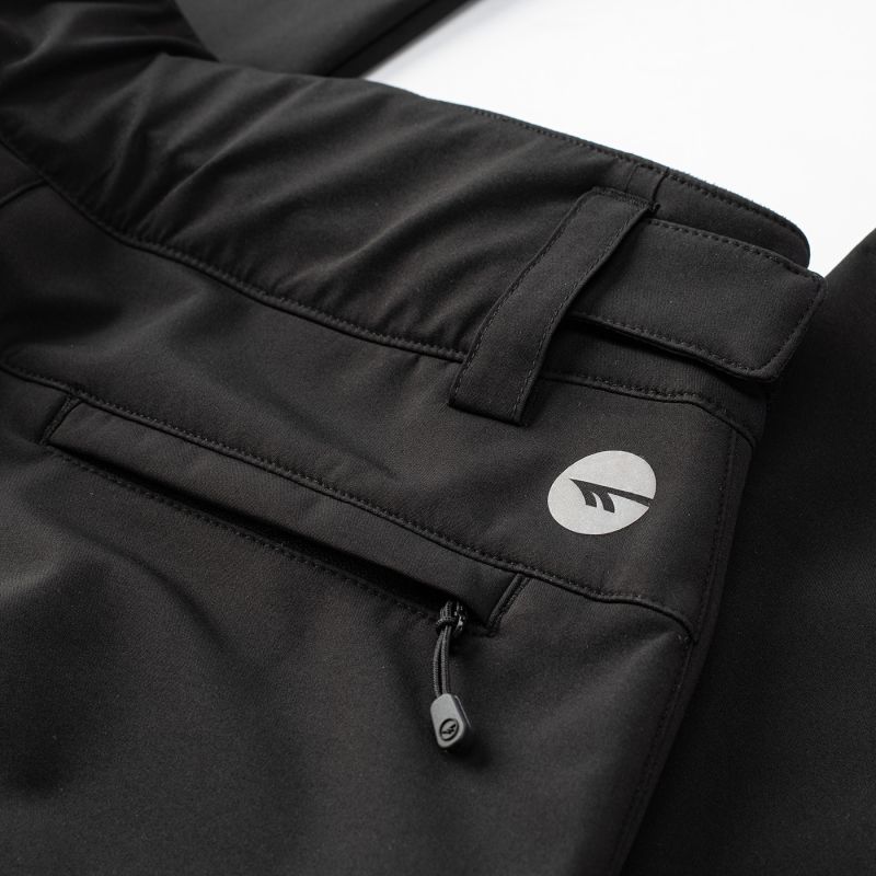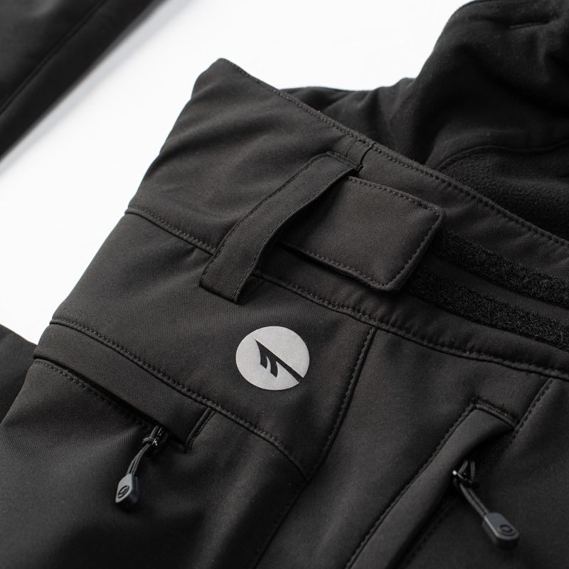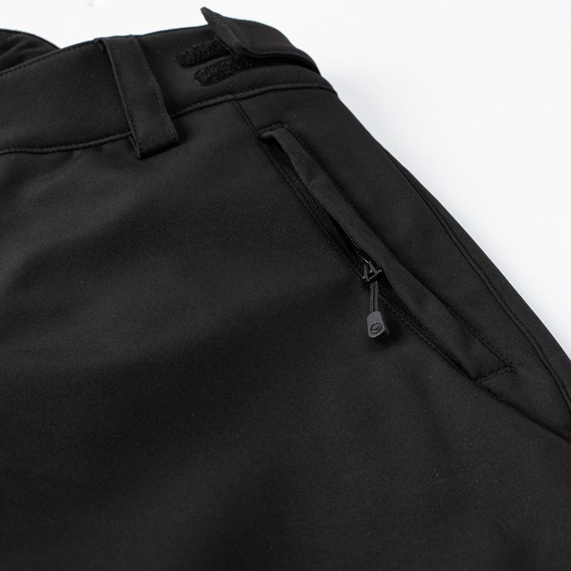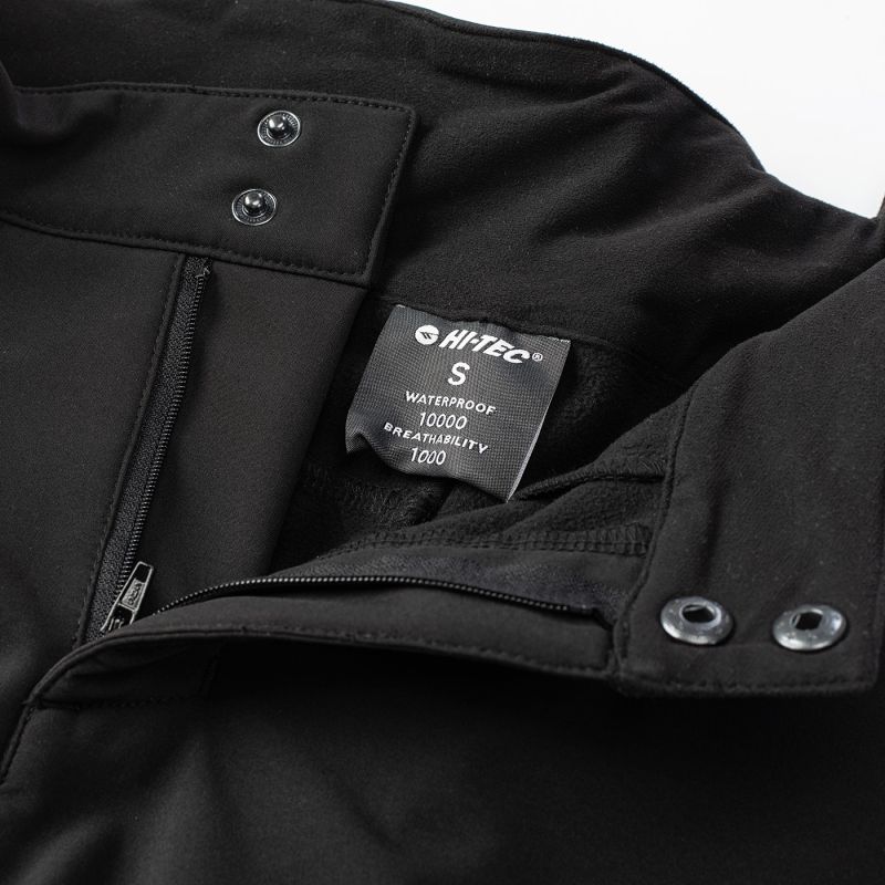 - Spodnie softshellowe z membraną: wodoodporność 10 000 mm H2O, oddychalność 1000 g/m²/24h