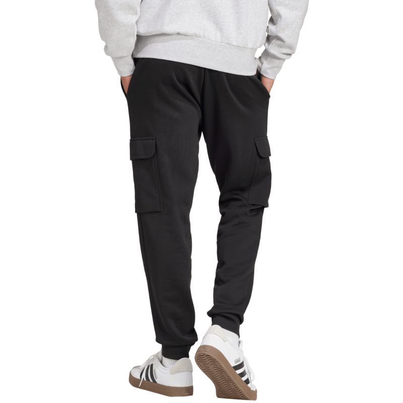 Spodnie męskie adidas Essentials Feelcozy Fleece Cargo czarne JE3820 Spodnie dla mężczyzn adidas ze zwężanymi nogawkami nie krępują ruchów, dając pełną mobilność i wygodę w każdej pozycji. Miły w dotyku materiał z lekkim ociepleniem. Elastyczne, subtelne mankiety. Pas ze sznurkiem do regulacji. Dwie wsuwane kieszenie boczne i dwie kieszenie typu cargo. Materiał: 70% bawełna, 30% poliester z recyklingu