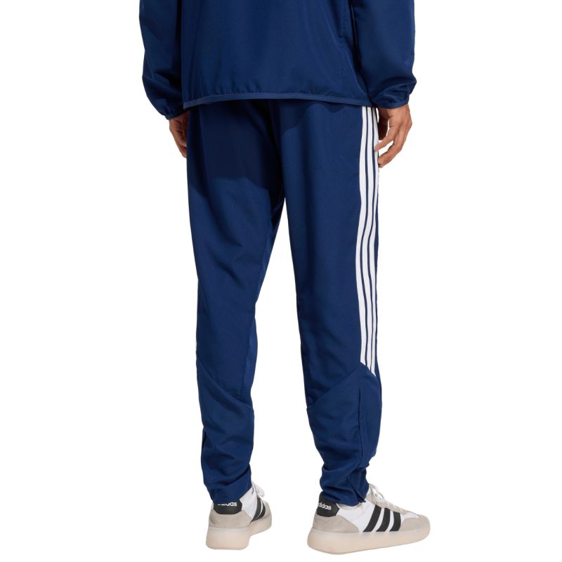 Spodnie męskie adidas Tiro 26 League Presentation granatowe JZ9045 Spodnie męskie adidas sprawdzą się podczas treningów i odpoczynku poza linią boczną boiska piłkarskiego. Regularny krój. Elastyczna talia dodatkowo regulowana wewnętrznym sznurkiem. Zapinane kieszenie boczne. Nogawki wykończone suwakami. Pozyskane w procesie recyklingu włókna. Model pochodzi z linii Tiro. Szybkoschnący materiał. Spodnie zapewnią wygodę i sportowy wygląd, gdy trenujesz i dbasz o odpowiednią regenerację po treningu. Materiał: 100% poliester z recyklingu