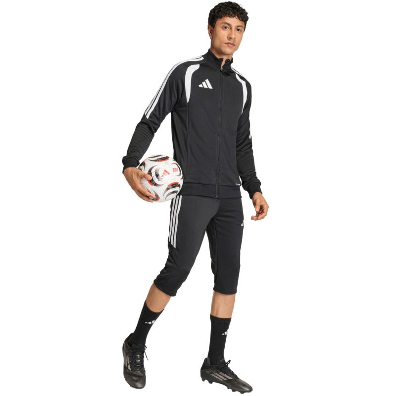 Spodnie męskie adidas Tiro 26 League Training 3/4 czarne KA6342 Spodnie męskie adidas sprawdzą się podczas treningów. Poliestrowy materiał zyskał technologię Climacool, która skutecznie odprowadza i rozprasza wilgoć. Dopasowany krój 3/4. Elastyczny pas. Boczne zamykane na zamek kieszenie. Materiał powstał z pozyskanego w procesie recyklingu. Materiał: 100% poliester pochodzący z recyklingu