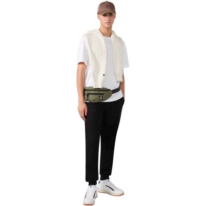Spodnie męskie Champion Rib Cuff Pants czarne 220299 KK001 Spodnie męskie Champion sprawdzą się na co dzień. Niewielkie logo. Materiał charakteryzujący się wentylacją i trwałością. Elastyczny pas z wewnętrzną regulacją. Dopasowany krój. Nogawki wykończone ściągaczami. Otwarte kieszenie boczne. Materiał: 70% bawełna, 30% poliester