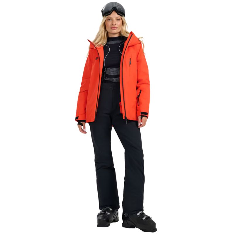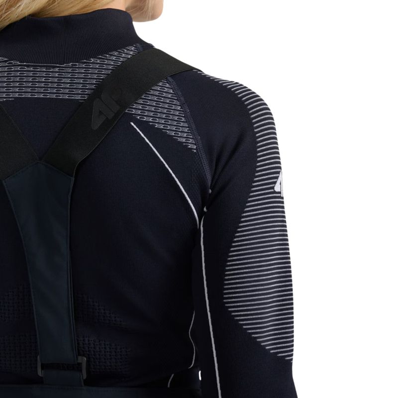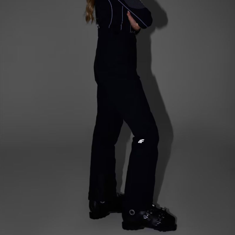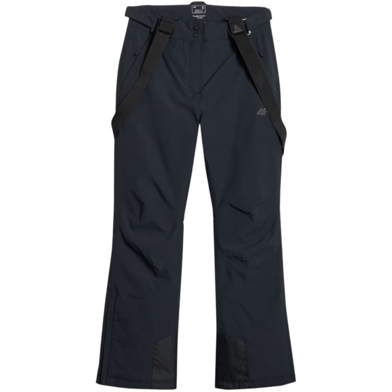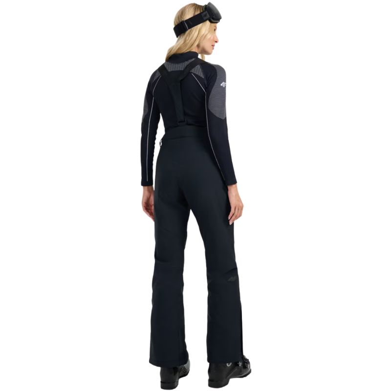 Spodnie narciarskie damskie 4F FNK F0944 głęboka czerń 4FWAW25TFTRF0944 20S Spodnie narciarskie damskie 4F zapewnią swobodę i ochronę nie tylko na stoku. Dane techniczne:· Materiał główny: 100% poliester· Materiał dodatkowy: 100% poliester· Podszewka: 100% poliester· Wypełnienie: 100% poliester (ocieplina poliestrowa)· Poziom wodoodporności membrany: 5 000 mm· Poziom oddychalności membrany: 3 000 g· Membrana NeoDry 5000/3000 - chroni przed lekkim deszczem i wspiera oddychalność materiału· Wszystkie klejone szwy - dodatkowa ochrona przed wnikaniem wilgoci do wnętrza· Hydrofobowe wykończenie - ogranicza wchłanianie wody przez zewnętrzną warstwę materiału· Ocieplina poliestrowa - zapewnia ciepło bez dodatkowego obciążenia· Wewnętrzne nogawki przeciwśnieżne - zabezpieczają przed przedostawaniem się śniegu do środka· Odpinane, regulowane szelki- pozwalają na indywidualne dopasowanie i wygodę noszenia· Pas z regulacją na rzepy - łatwo dostosowuje się do sylwetki i zapewnia stabilność· Wzmocnienia u dołu nogawek - zwiększają trwałość materiału w newralgicznych miejscach· Zamki po bokach nogawek - ułatwiają zakładanie spodni na buty narciarskie· 2 kieszenie boczne na zamek - na drobiazgi, które chcesz mieć zawsze pod ręką· Profilowana strefa kolan - lepsza mobilność podczas jazdy na nartach· Wysoki stan - chroni plecy i zwiększa komfort cieplny na stoku· Gładka podszewka - łatwo przesuwa się po odzieży termicznej· Elementy odblaskowe - poprawiają widoczność w słabym świetle· Regularny krój - gwarantuje wygodę i swobodę ruchów· Długość za kostkę - pełne zakrycie nóg, idealne na zimowe warunki
