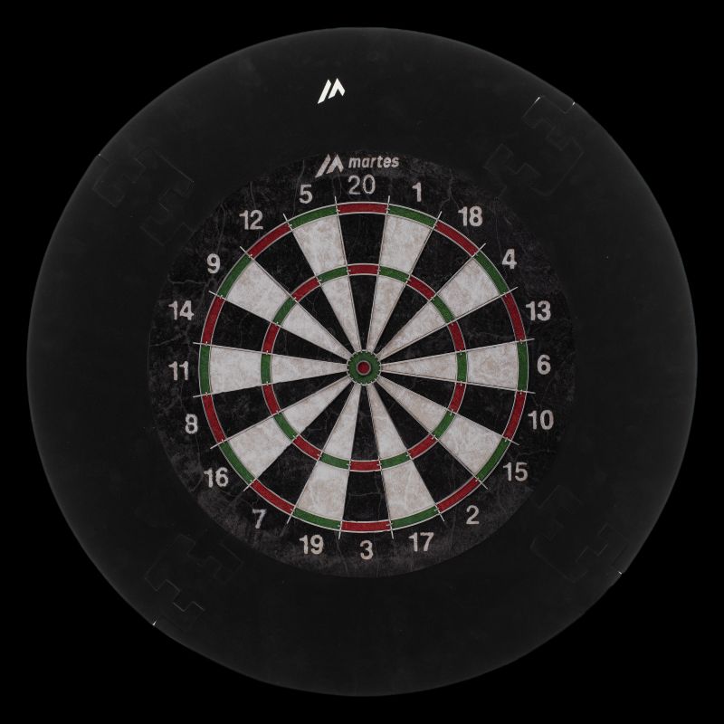 SKŁADANA OSŁONA DO TARCZY DART ŚREDNICA: 45 cm GRUBOŚĆ: 2,7 cm WAGA: 400 g SKŁAD MATERIAŁOWY: PIANKA EVA SPECYFIKACJA: - POWIERZCHNIA POKRYTA FLOKIEM