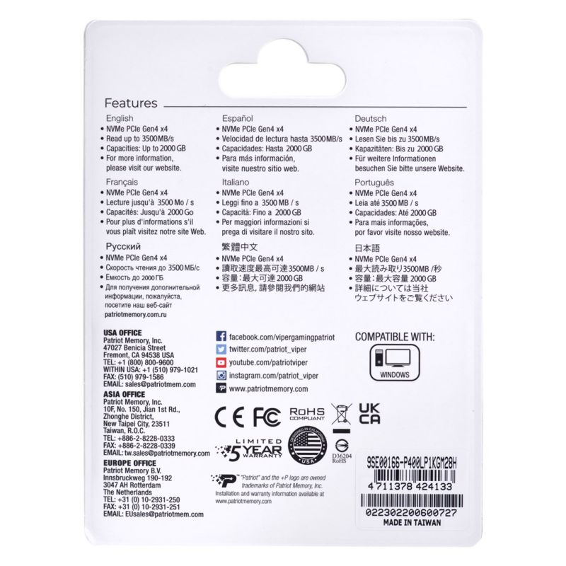 5. SSD Patriot Viper P400 Lite M.2 PCI-Ex4 NVMe 1000GB