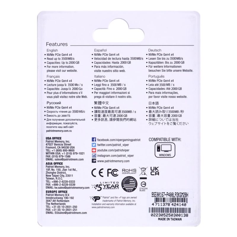 5. SSD Patriot Viper P400 Lite M.2 PCI-Ex4 NVMe 2000GB