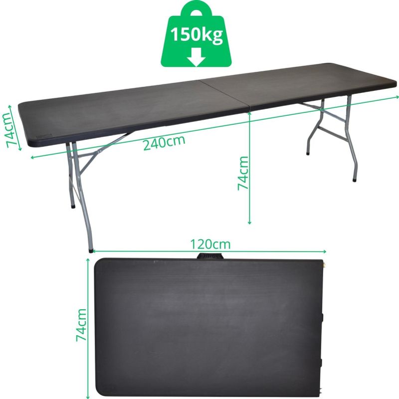 STÓŁ CATERINGOWY SKŁADANY W WALIZKĘ 240x74x74CM 150KG CZARNY
