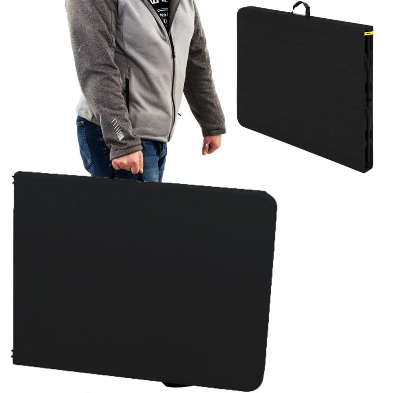 STÓŁ CATERINGOWY SKŁADANY W WALIZKĘ 240x74x74CM 150KG CZARNY to solidny stół o długości 240 cm, który wytrzyma aż 150 kg obciążenia, a po złożeniu zmieści się w formie walizki do bagażnika – idealny na każdą okazję./p>