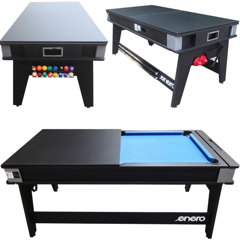 Chcesz mieć w domu stół, przy którym można grać, jeść i dobrze się bawić – bez zamiany salonu w magazyn sportowy? STÓŁ DO MULTIGIER 4W1 BILARD TENIS STOŁOWY CYMBERGAJ STÓŁ JADALNY 189x94,1x81,3CM ENERO – to bilard, tenis stołowy, cymbergaj i stół do codziennego użytku w jednej, sprytnej konstrukcji!