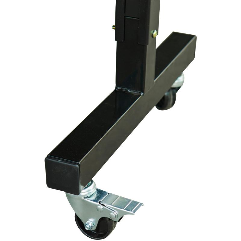 8 mocnych, skrętnych kółek transportowych z wbudowaną blokadą oraz możliwość składania stołu ułatwiają jego przechowywanie oraz przemieszczanie po zakończonej grze.