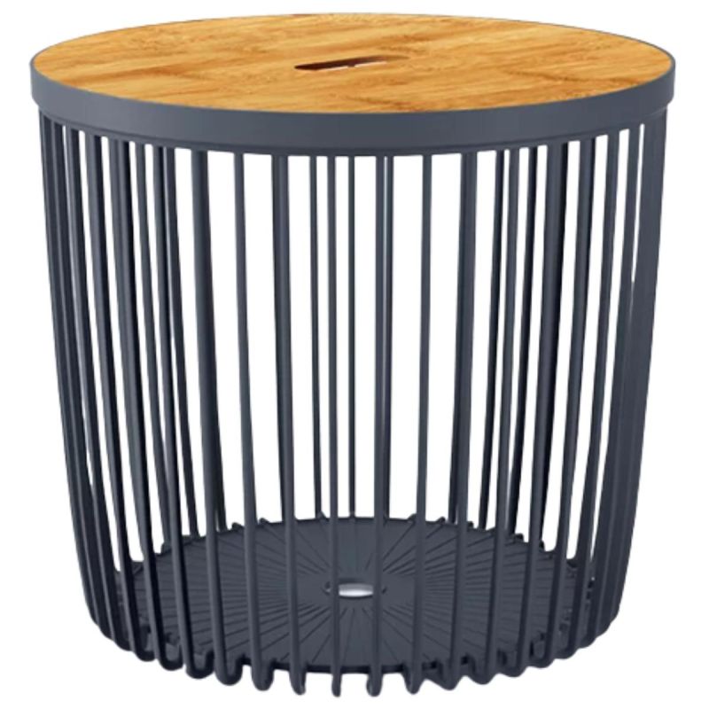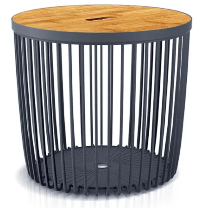 Odporność na warunki atmosferyczne - dzięki odporności na warunki atmosferyczne stolik kosz może być używany również w przestrzeniach zewnętrznych. Sprawdzi się na tarasie, balkonie lub w ogrodzie. To praktyczne rozwiązanie do domu i na zewnątrz.