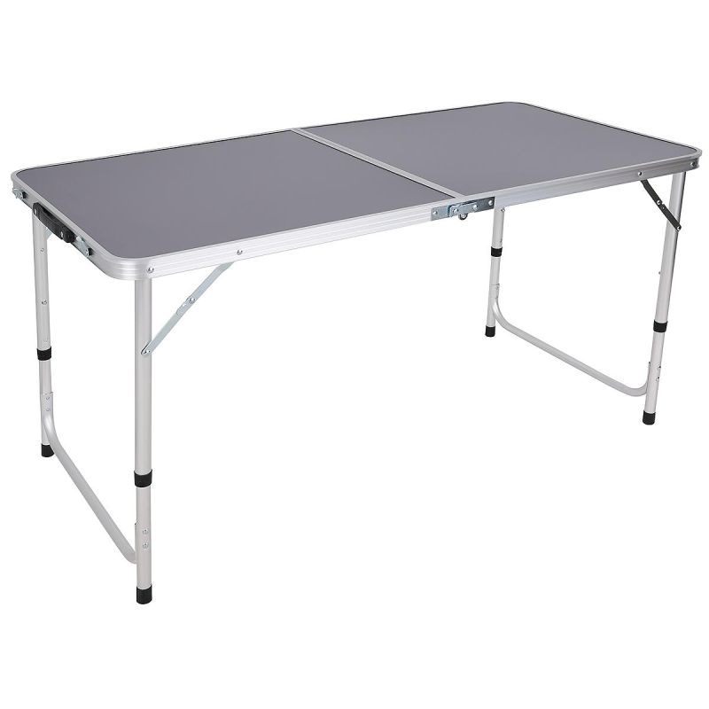 STOLIK TURYSTYCZNY SKŁADANY KEMPINGOWY 120X60X70/62/55CM SZARY to podstawa Twojego wyjazdu na kemping, wakacje, czy na ryby. Sprawdzi się również na niewielkim balkonie lub nad jeziorem gdy zgłodnieją dzieci. Po złożeniu zajmuje mało miejsca i jest gotowy zawsze, kiedy go potrzebujesz, bo jego system składana i rozkładania jest błyskawiczny. Stolik posiada również specjalna blokadę, która chroni przed samodzielnym otwarciem oraz 3 stopniowa regulacje wysokości. Łatwy i szybki montaż pozwoli Ci go rozłożyć w kilka minut i dopasować do wzrostu użytkowników. Stelaż stolika wykonany z solidnych i wytrzymałych rurek utrzyma obciążenie do 30 kg.