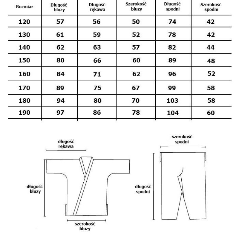 - Klasyczne kimono do judo dla osób początkujących o gramaturze 350 g/m2 w kolorze białym.