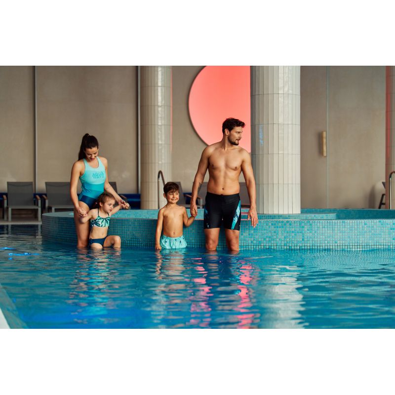 - SALAVA WMNS marki Aquawave to wygodny jednoczęściowy strój kąpielowy. Został uszyty z materiałów syntetycznych bardziej odpornych na działanie chloru i promieni słonecznych.