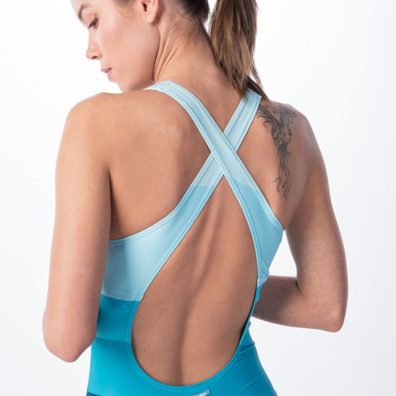 - Elastyczny materiał ściśle dopasowuje się do ciała, nie krępując ruchów. Prezentowany model posiada wyjmowane miseczki modelujące.