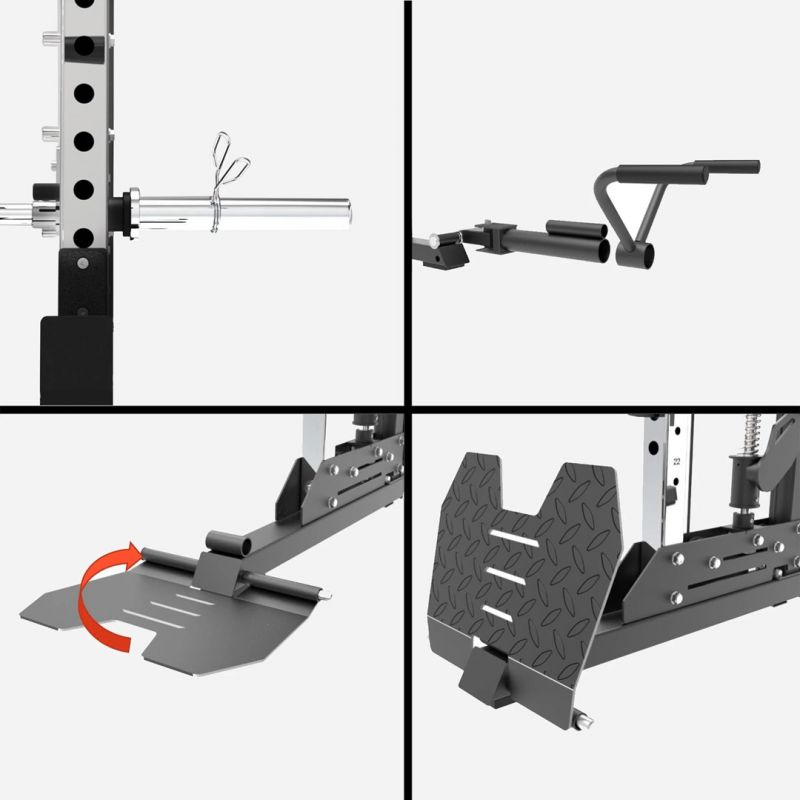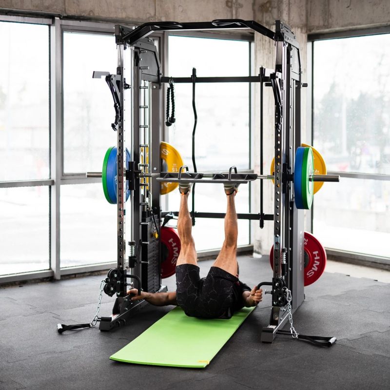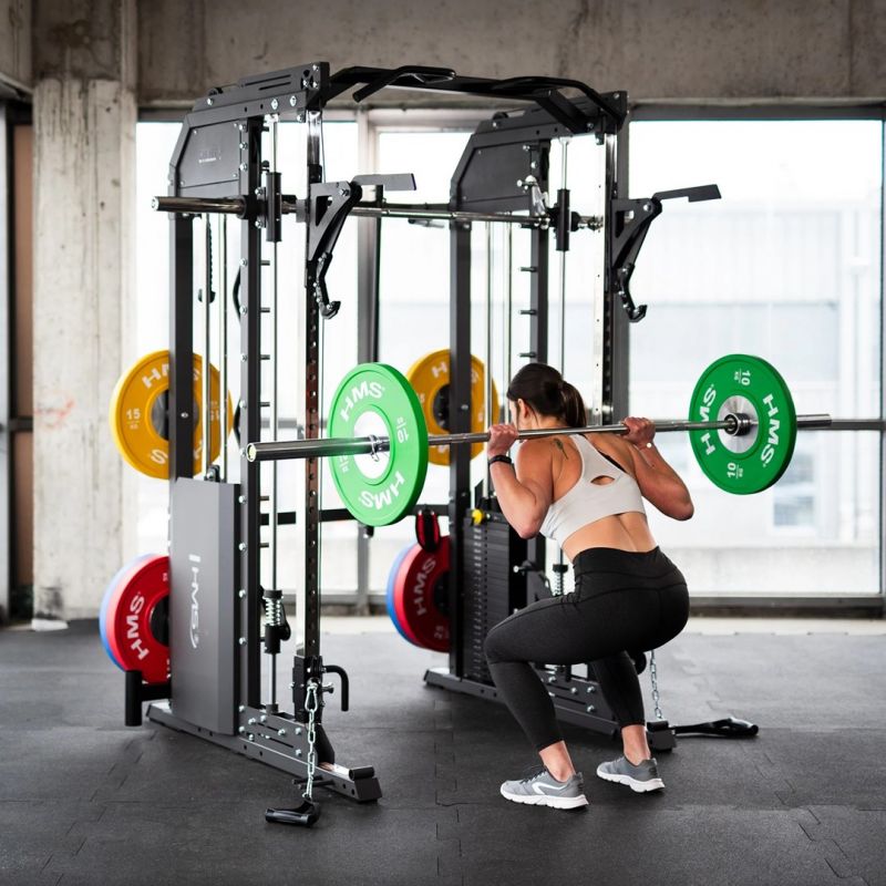 - Prowadnice gryfu z mechanizmem bezpieczeństwa: Tak