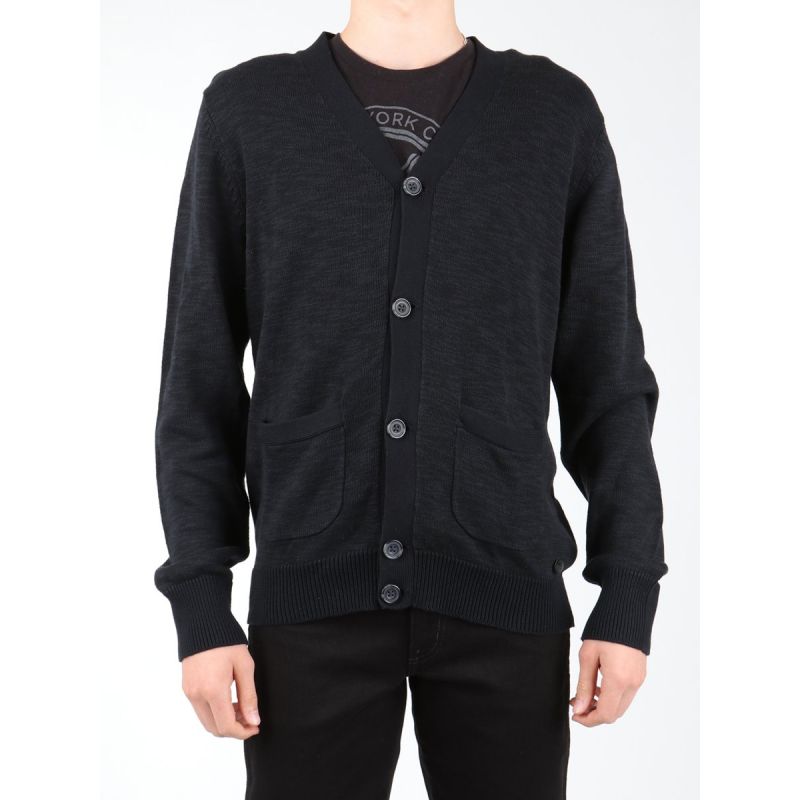 Męski sweter z długim rękawem i zapięciem na guziki. Dwie boczne kieszenie. Ze względu na klasyczny wygląd i uniwersalny kolor model ten pasuje do każdej stylizacji. Materiał 79% bawełna 21% len