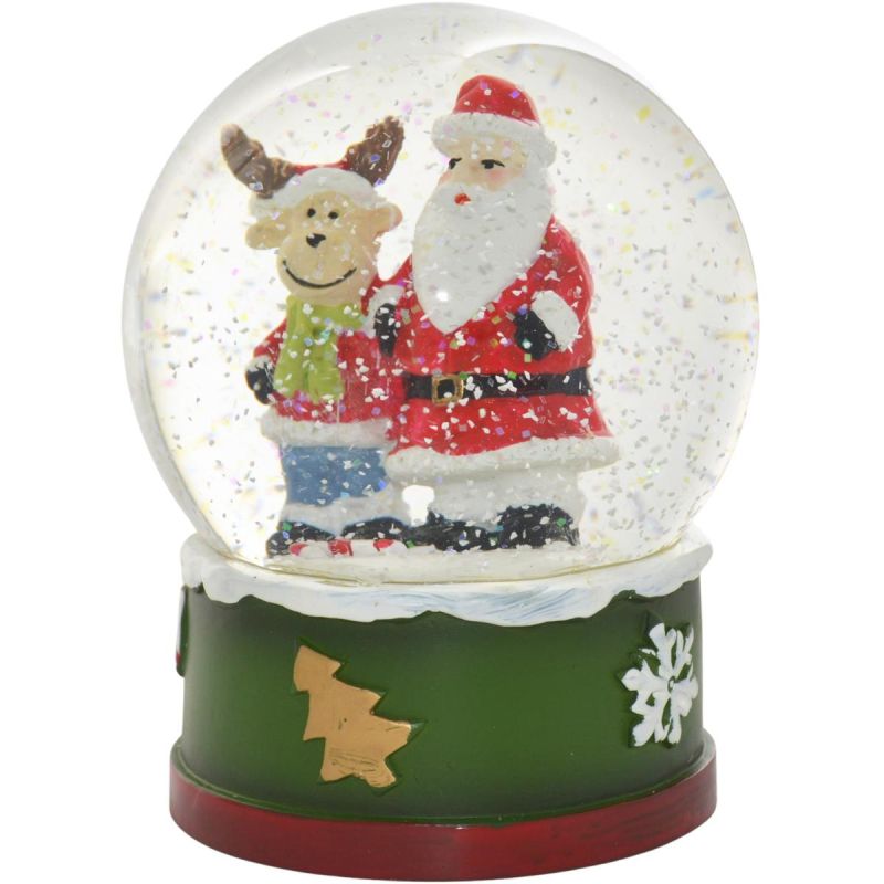 - dekoracyjna kula świąteczna z figurką Mikołaja i renifera w środku