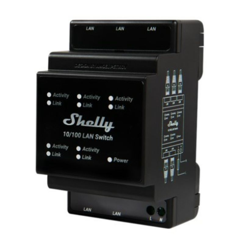 Switch LAN Shelly - gniazdko - 5 portów - 10/100 Mbit