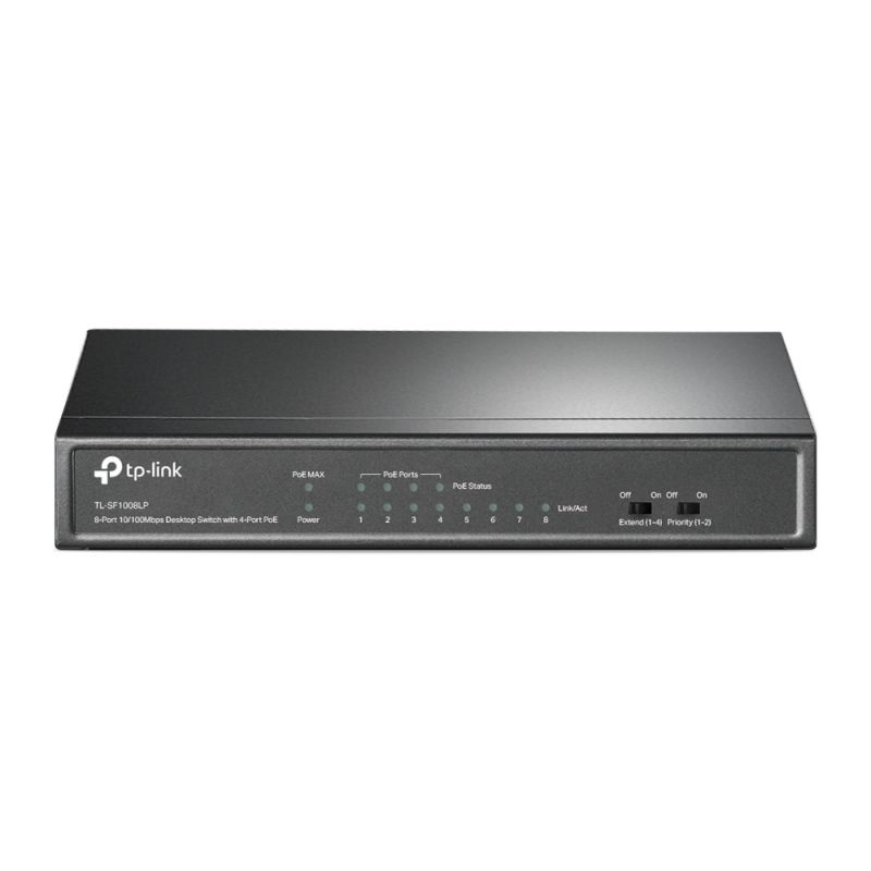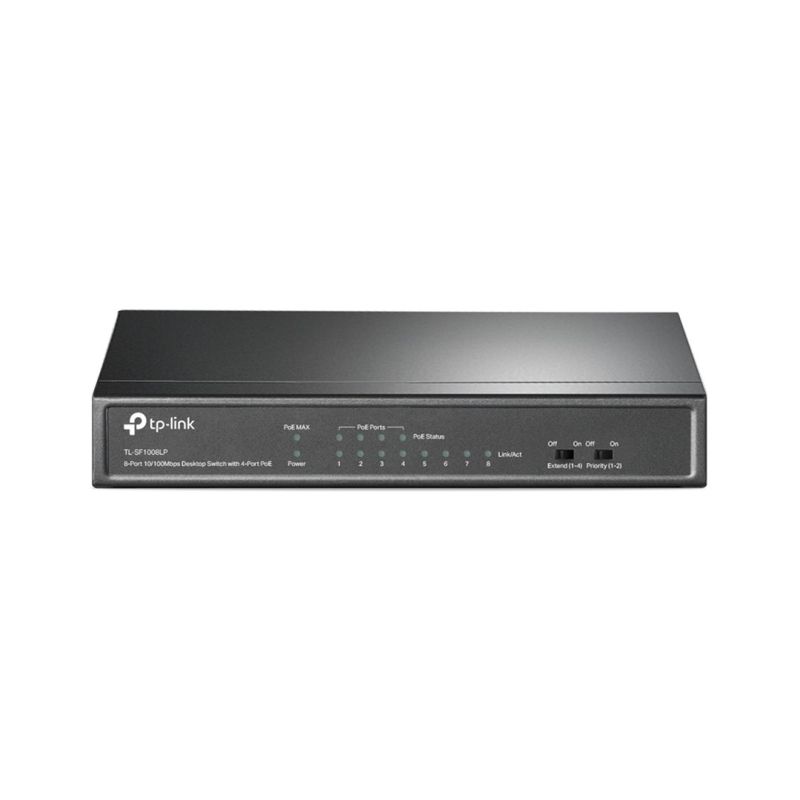 Switch TP-LINK TL-SF1008LP Przełącznik typu desktop, 8 portów 10/100 Mb/s, 4 porty PoE , 8 portów RJ45 10/100 Mb/s, 4 porty PoE, transfer danych i zasilanie urządzeń przy wykorzystaniu tych samych kabli, Instalacja typu plug and play, nie wymaga konf