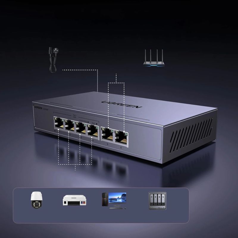 Switch Ugreen Ethernet 6-Portowy 1Gb/s z PoE - szary