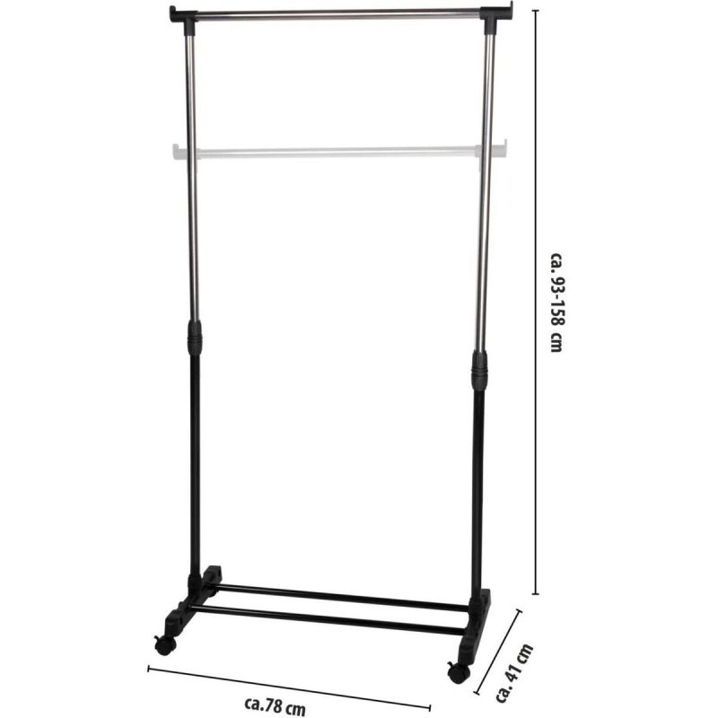 Regulowana wysokość (93–158 cm) pozwala dopasować wieszak do różnej długości ubrań – od krótkich koszul i bluz po długie płaszcze czy sukienki. Dzięki temu masz większą elastyczność i nie musisz martwić się o zagniecenia czy ograniczoną przestrzeń pod spodem.