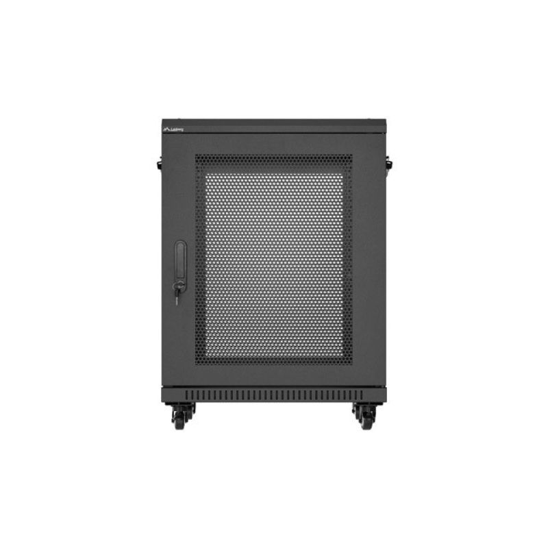 10. Szafa instalacyjna RACK stojąca 19" 15U 600x600 czarna drzwi perforowane Lanberg (flat pack)