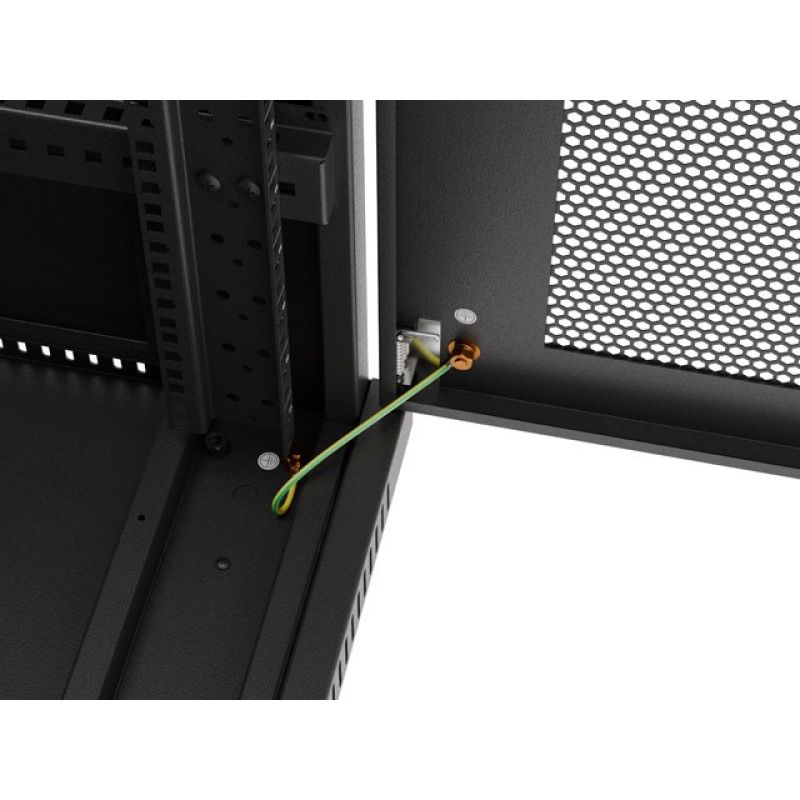 9. Szafa instalacyjna RACK stojąca 19" 15U 600x600 czarna drzwi perforowane Lanberg (flat pack)