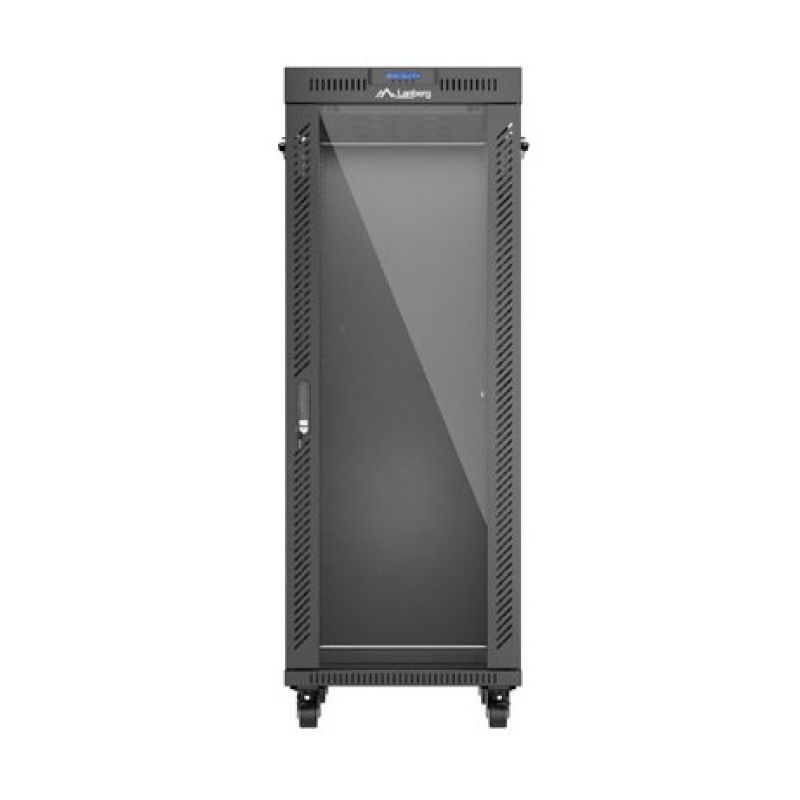 Szafa instalacyjna rack stojąca 19" 32U 600x1000 czarna drzwi przeszklone LCD Lanberg (flat pack)