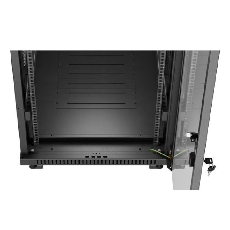 11. Szafa instalacyjna rack stojąca 19" 32U 600x1000 czarna drzwi przeszklone LCD Lanberg (flat pack)