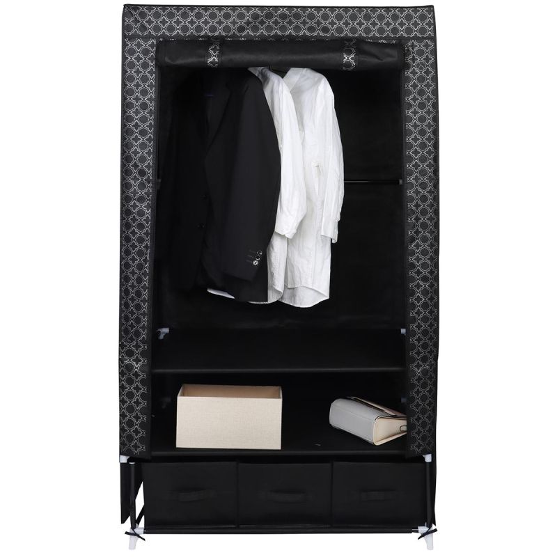 Szukasz lekkiej przenośnej szafy, aby powiesić i schować ubrania? GARDEROBA TEKSTYLNA 88X50X160 CM ORNAMENT sprawi, że twoje rzeczy będą schludnie przechowywane i zawsze pod ręką w ładnej ozdobionej ornamentem szafie!