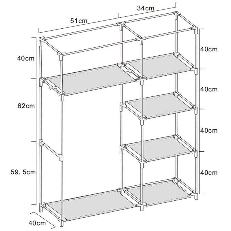 Lekka szafa z materiału świetnie zastąpi tradycyjny, ciężki mebel. Spisze się w miejscach, w których brak miejsca na pełnowymiarową szafę. Szafy materiałowe są niewielkie i doskonale pasują do małych zakamarków domu. Szafa nadaje się zarówno do sypialni, biura lub na kemping. Łatwa w montażu i demontażu, dzięki czemu można ją łatwo przetransportować. Materiał zamykany jest na zamek błyskawiczny. Szafa świetnie ochroni ubrania lub buty przed kurzem i wszelkimi zabrudzeniami.