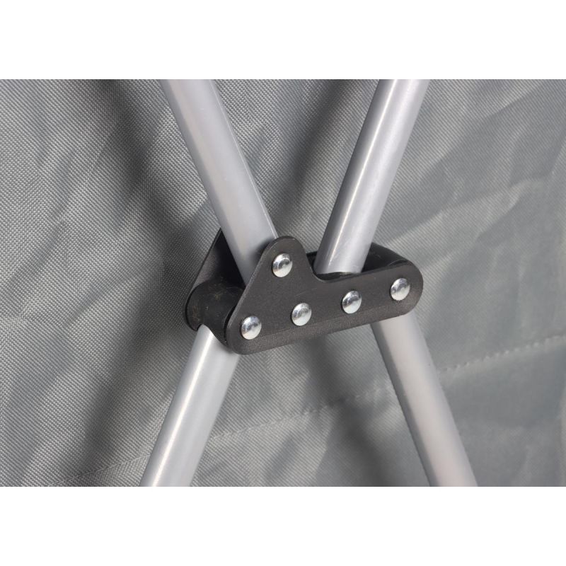 Stalowa, składana konstrukcja pozwala na jej szybkie rozłożenie i złożenie bez użycia jakichkolwiek narzędzi, co jest bardzo wygodne podczas podróży.